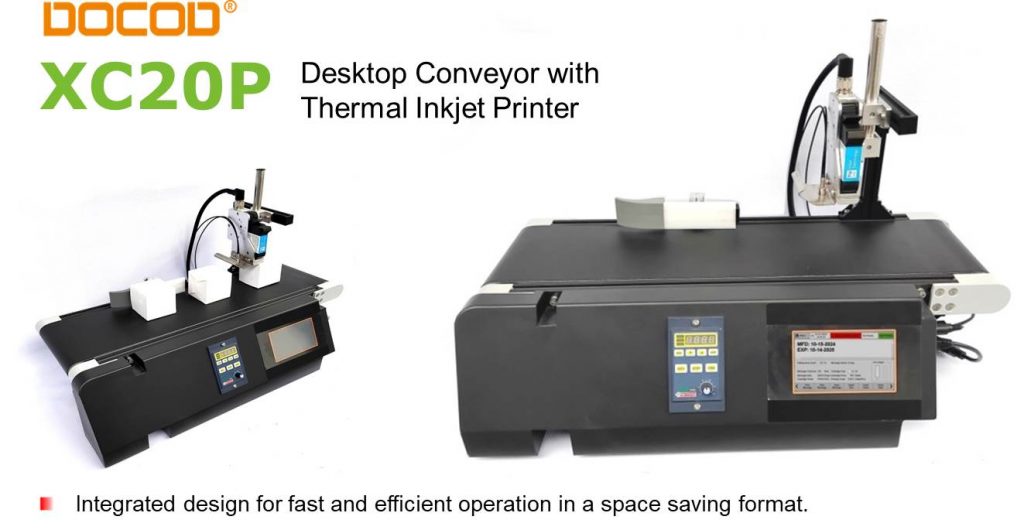 | The Docod XC20P is a compact dsektop conveyor with an integrated thermal inkjet printer providing an all-in-one coding solution. |