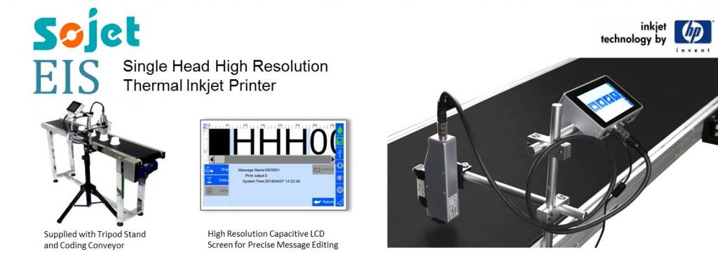 | Prints on a variety of materials such as paper, board, plastics, metal, glass and wood. Automatic recognition of ink types and optimum printing parameters. External database support through LAN connection and optional PC software . Durable metal construction. Usually supplied bundled with a 1.3 meter coding conveyor. |